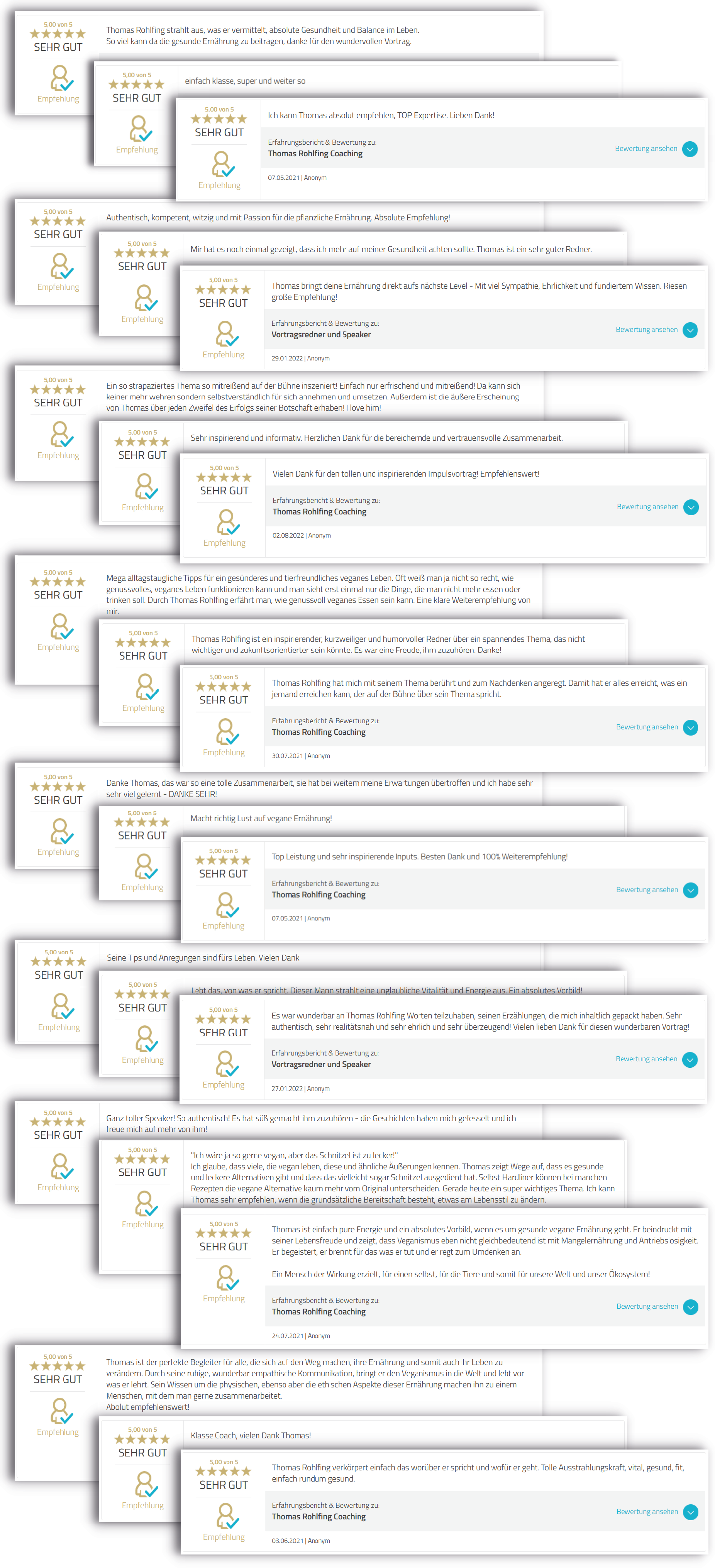 Ich kann die Zusammenarbeit mit Thomas wirklich von Herzen empfehlen. Er ist ein sehr emphatischer Mensch und bringt ganz viel Expertise im Bereich pflanzliche Ernährung und Gesundheit mit. Ich durfte seine Erfahrung und Gewandtheit als Speaker direkt im Rahmen des HAPPY VEGAN Soul Summit 2021 erfahren, den ich selbst ausgerichtet habe und bei dem er einer unserer Speaker war. Auch auf anderen Bühnen, wie zB dem Erfolgskongress, transportiert er die Message der gesunden, pflanzlichen Ernährung mit viel Leichtigkeit, Witz, Geschichten und nachvollziehbaren Beispielen, die Lust auf Ausprobieren und Veränderung machen.