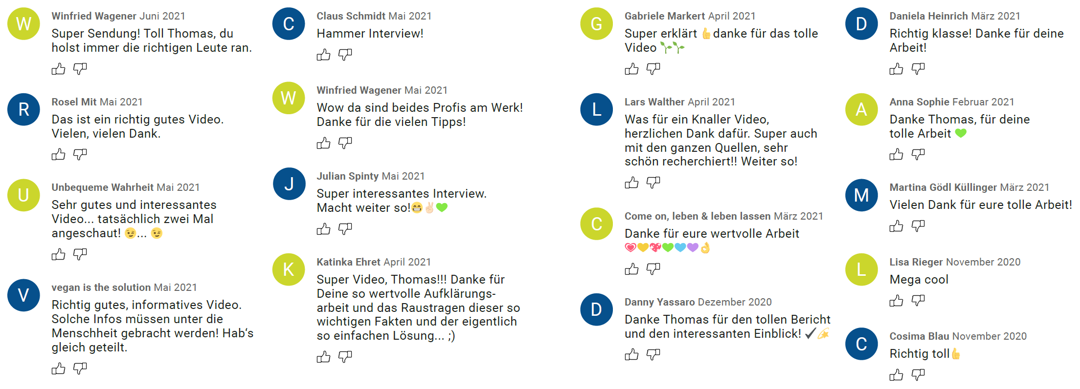 In seiner Arbeit vermittelt Thomas verständlich, klar und alltagstauglich das erforderliche Wissen für eine gesunde vollwertige und pflanzenbasierte Ernährung. Eine gelungene Mischung aus eigenen Erfahrungen und fundiertem und bis ins Detail recherchiertem Wissen, das er interessant und verständlich rüberbringt. Er versteht es, ohne erhobenen Zeigefinger seine Botschaft zu vermitteln und ist dabei immer verständnisvoll. Er hat stets hilfreiche Tipps, wie eine Umsetzung einfach gelingen kann.